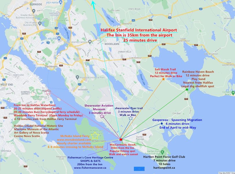The Inn is Canada Select 4 star,we nestled among the heritage buildings near the boardwalk and shops at Fisherman’s Cove with eight rooms for you to choose from: four front rooms overlooking the town of Eastern Passage (most with water views from the side windows) and four rooms with balconies directly overlooking the water, with fantastic views of the waterways in and out of Halifax Harbour.